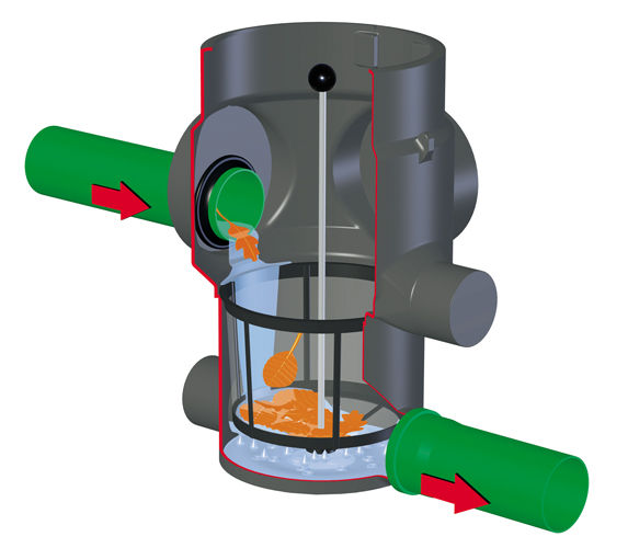 Dažďová voda zo strechy je do nádrže privádzaná jednou, alebo viacerými rúrami. Filtračný kôš zachytí všetky mechanické nečistoty. Ponorné čerpadlo Gardena, prípadne výkonnejšie čerpadlo Divertron, ktoré je umiestnené v nádrži, zabezpečuje prívod vody tlakovou hadicou priamo do integrovanej prípojky v poklope nádrže.